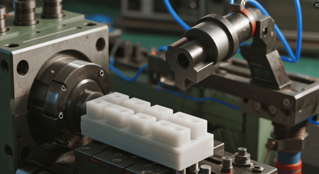 The machine’s clamping unit holds the two halves of a mold—the core and the cavity—securely together. Once the plastic has reached the right temperature and consistency, the screw injects the molten material into the closed mold at a precise pressure and speed. This is a critical phase, as the plastic must fill every corner of the mold’s intricate internal geometry without trapping air or creating defects.